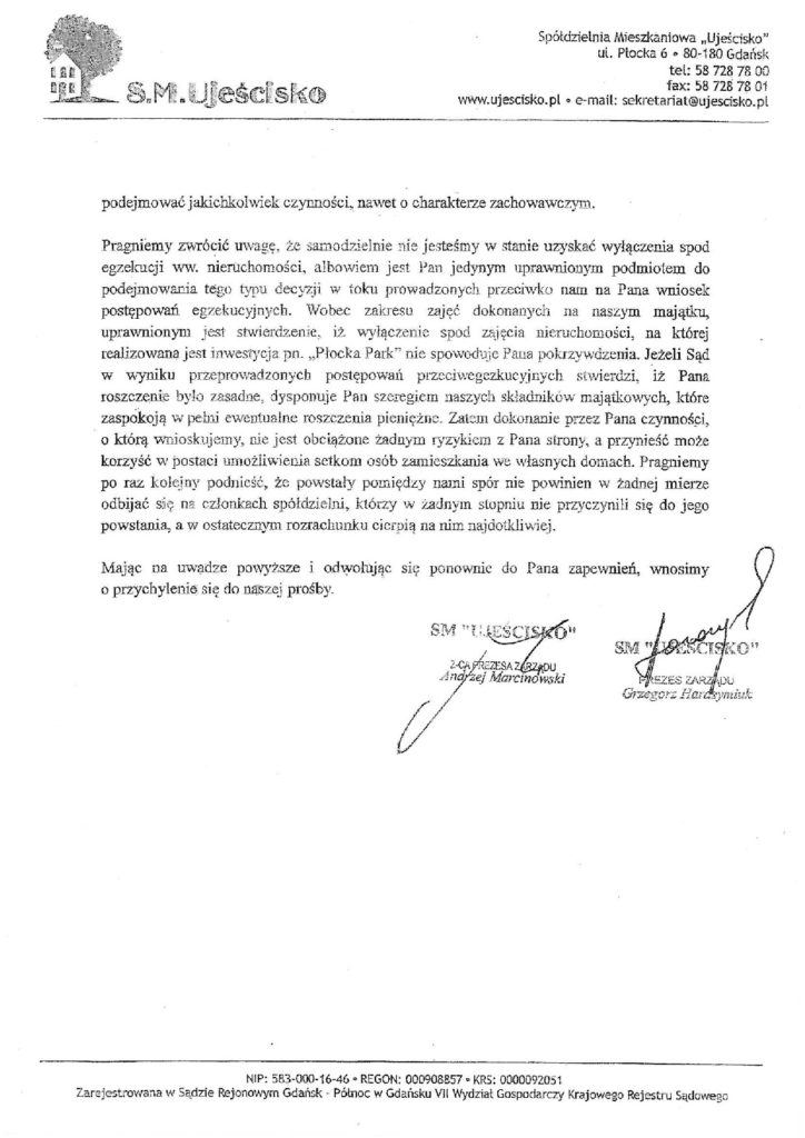 Zajęcia w toku postępowań egzekucyjnych nieruchomości – inwestycja Płocka Park.